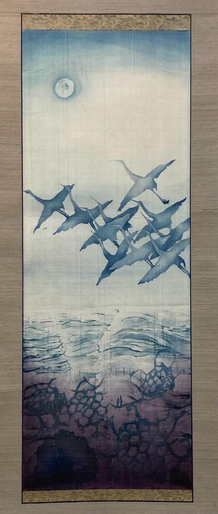 Ro-kata is a process that Kiranada has happily used for the past thirty-five years to design wall-hangings, kimono, obi, scrolls, standing screens, and fashion and loves sharing this innovative process with others.