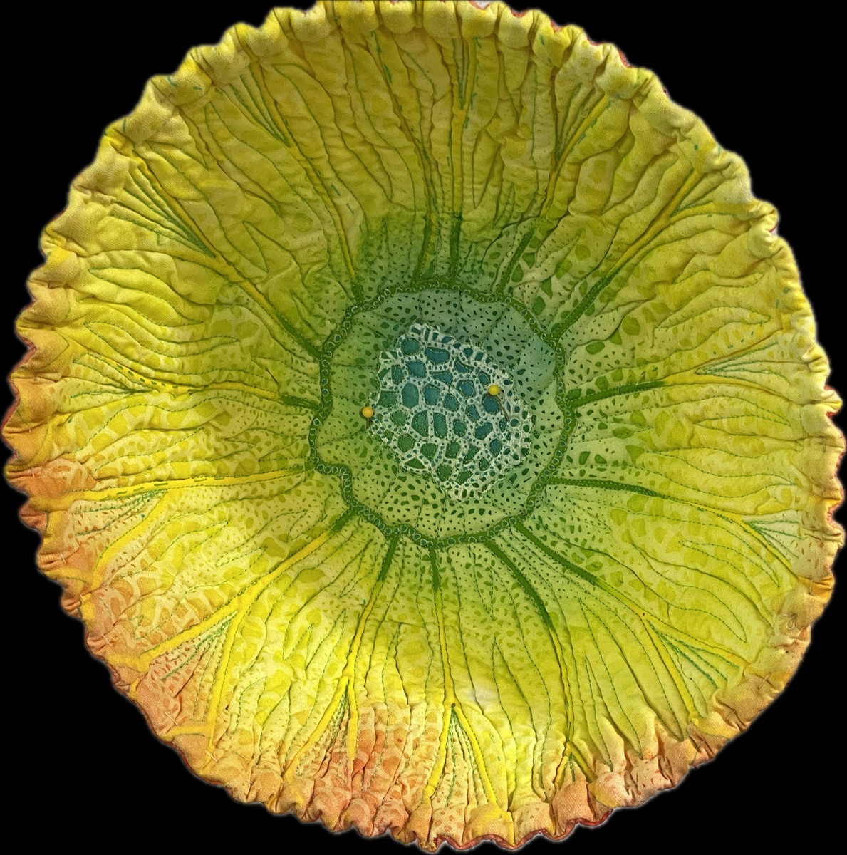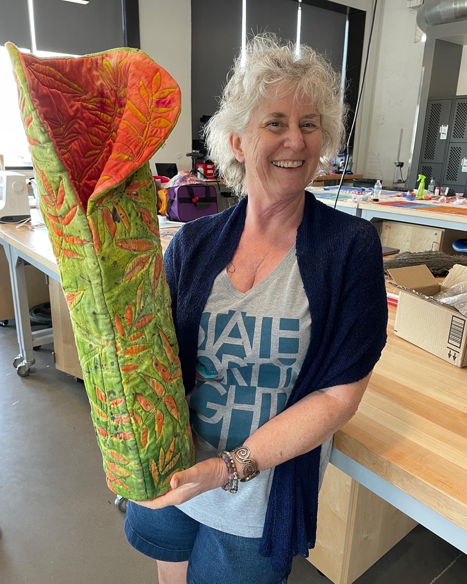 Betty Busby founded a custom ceramic tile manufacturing firm in Los Angeles after graduating from the Rhode Island School of Design with a major in Ceramics. After nearly 20 years of running the firm, she sold the business in 1994 (it is still in operation to this day). Upon relocating to New Mexico, she changed the focus of her artwork to fiber, taking it full time in 2004. Her manufacturing background has lead to constant experimentation with new materials and techniques that fuel her work, such as classic fractal structures, natural processes, and traditional Amish quilts shown at the Kutztown County Fair in Pennsylvania. Her website is www.bbusbyarts.com