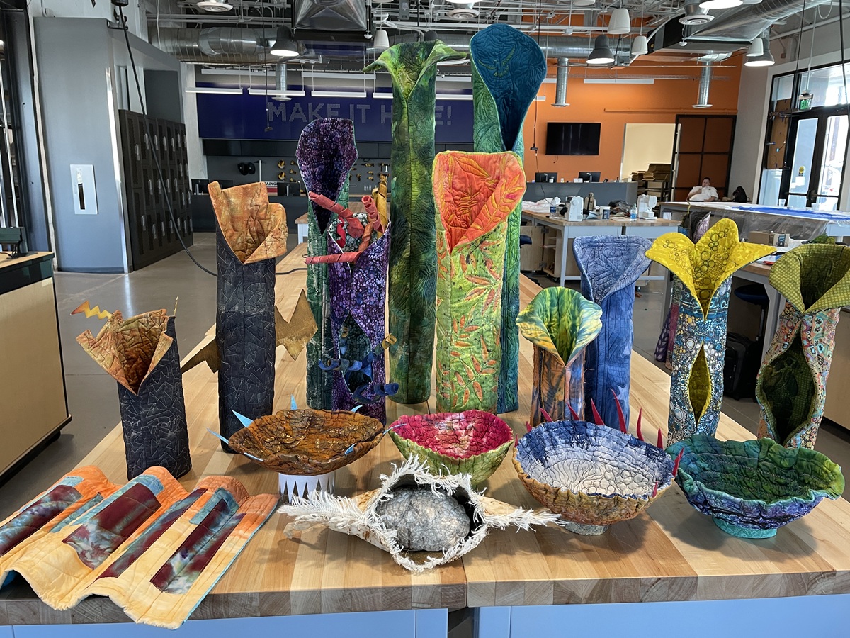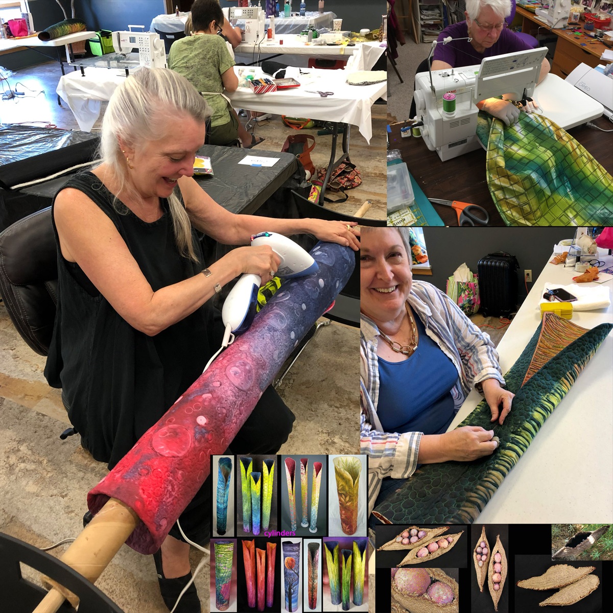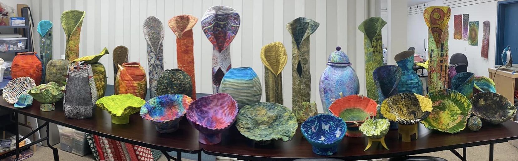 In this class, we will explore the basics of using this very useful material by creating free standing, quilted cylinders and bowls. You will unlock your imagination and be able to create many variations on the basic shapes once you understand the process- a variety of products from our classes are in the photos. Materials fee includes 1 yard Fosshape 300- extra material is available from EQuilter.com.