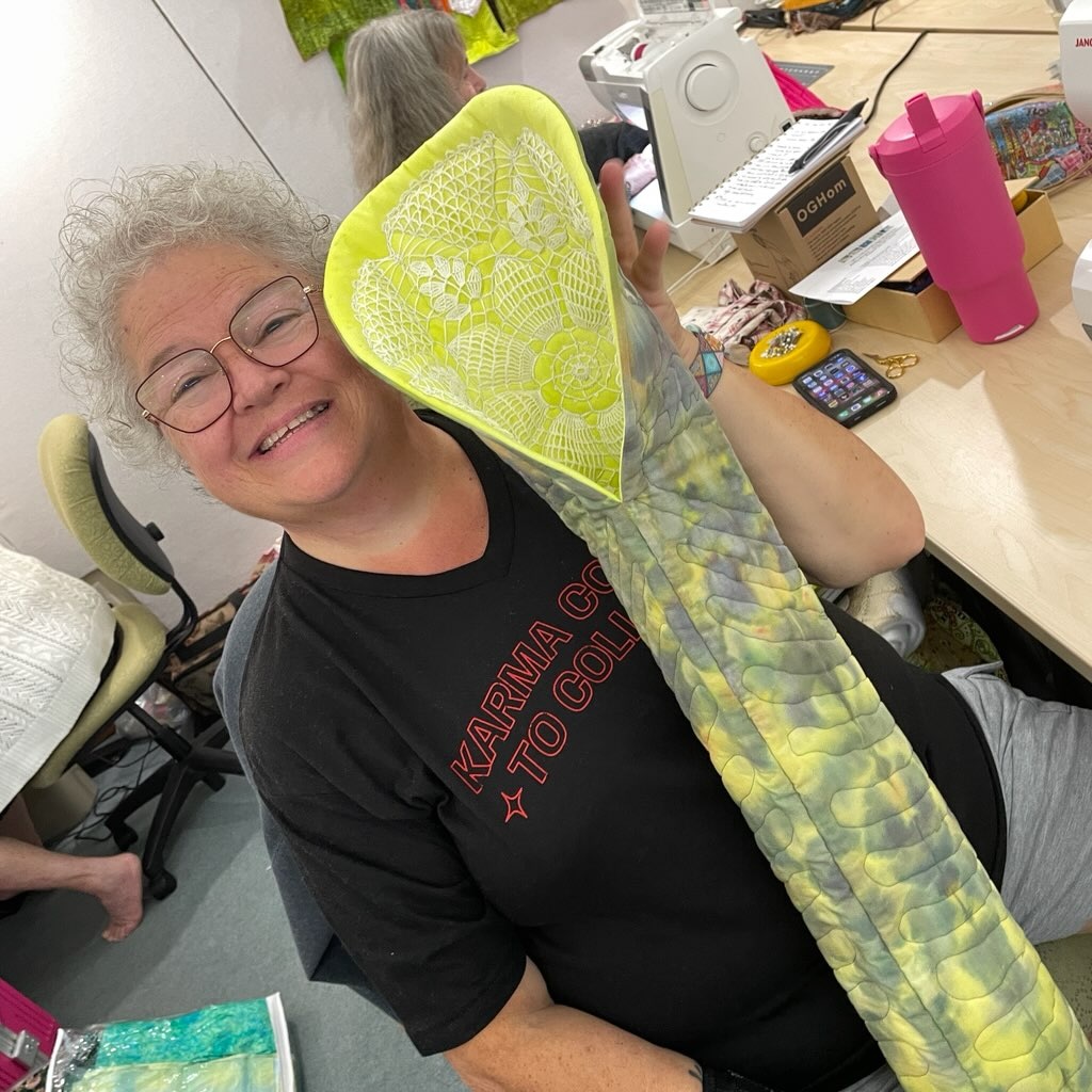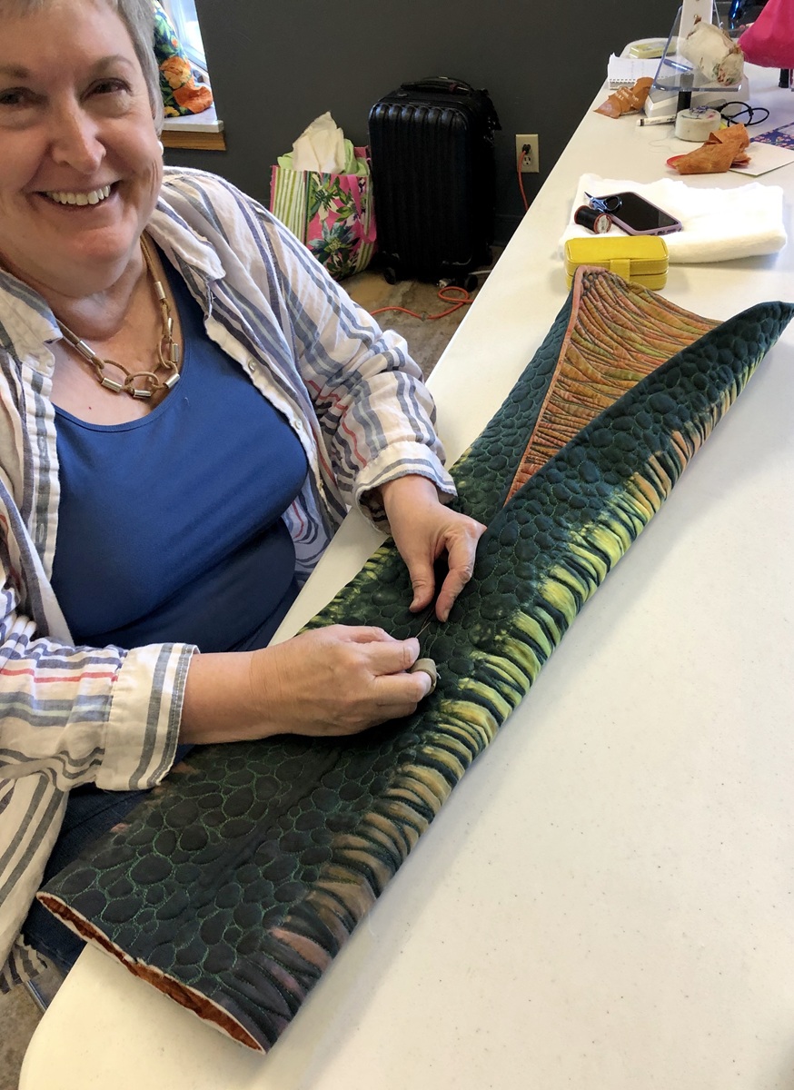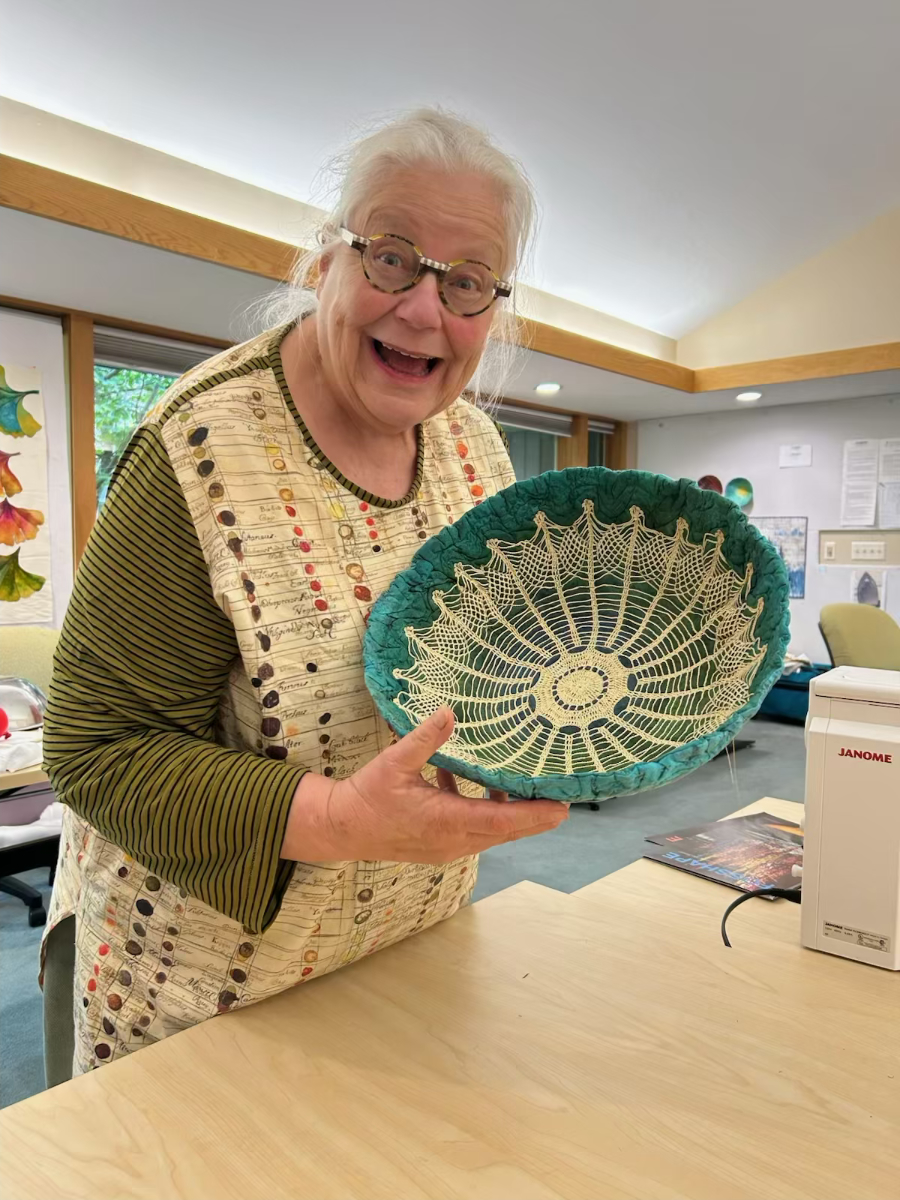 In this class, we will explore the basics of using this very useful material by creating free standing, quilted cylinders and bowls. You will unlock your imagination and be able to create many variations on the basic shapes once you understand the process- a variety of products from our classes are in the photos. Materials fee includes 1 yard Fosshape 300- extra material is available from EQuilter.com.