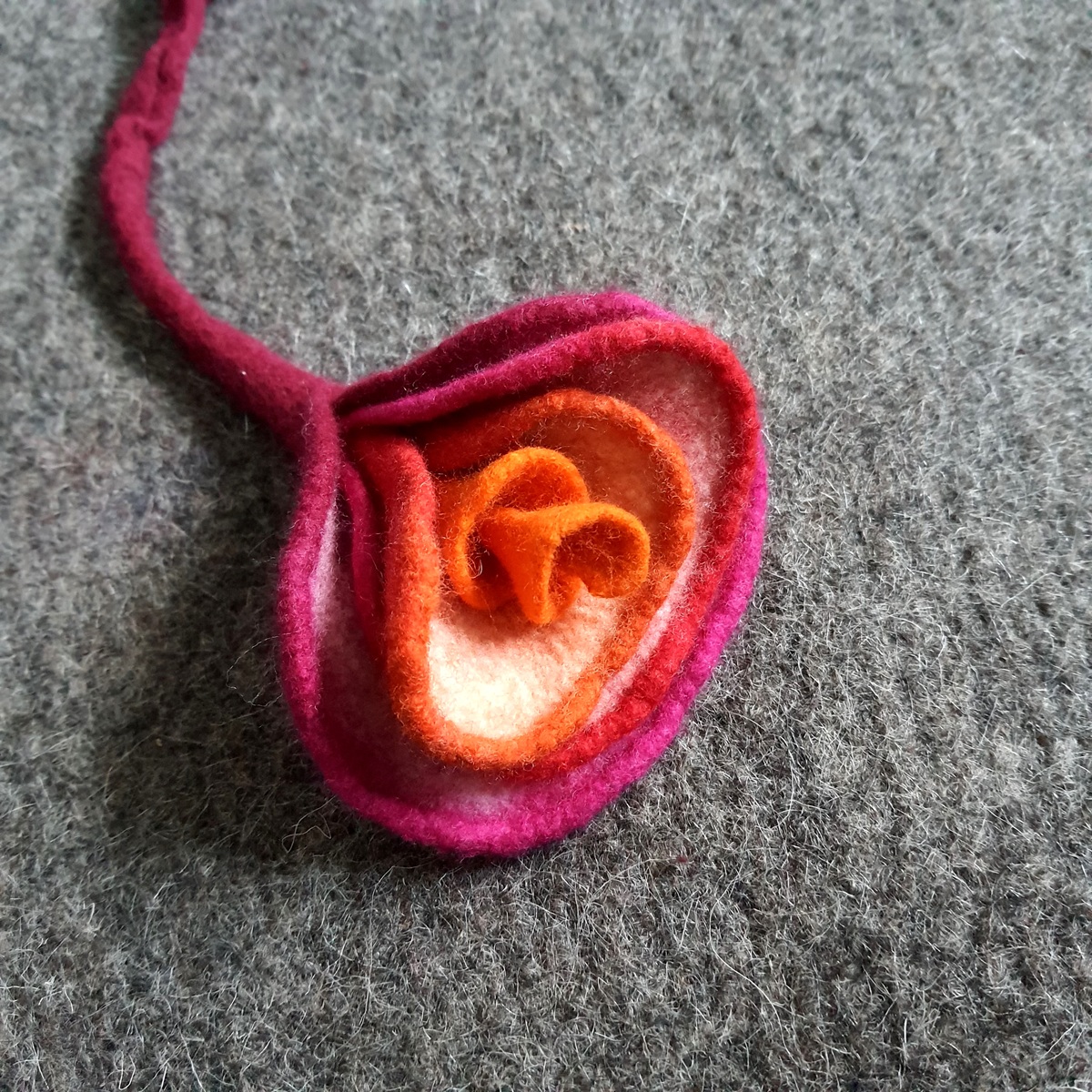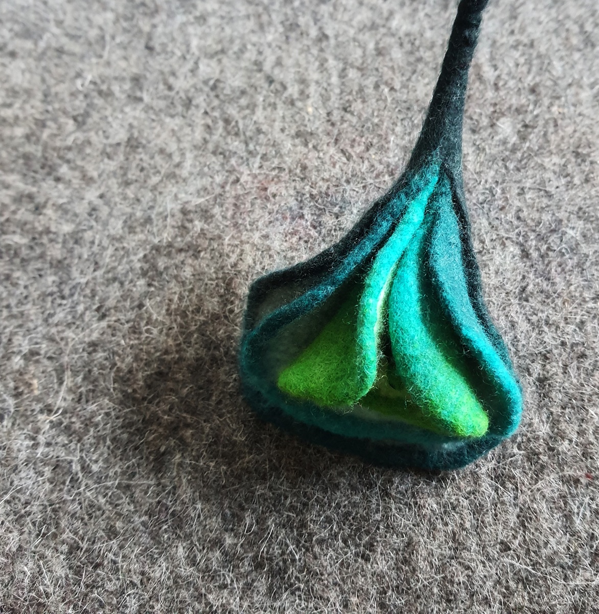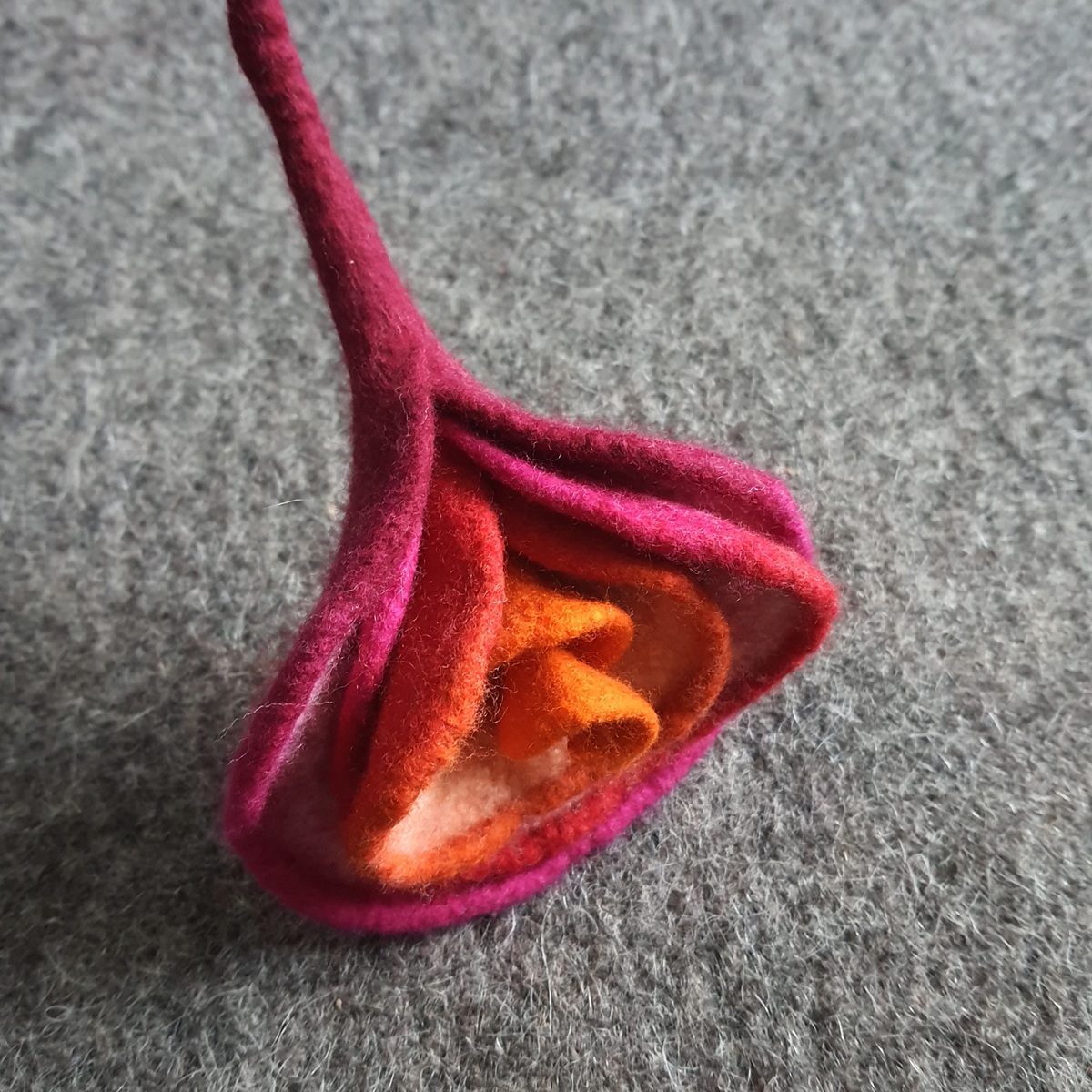 In this class I will guide you to create complex 3D shapes inspired by nature. You’ll master a very thin layout with smooth color blending to create a pearlescent, featherweight Calla Lily shaped pendant. We’ll make the cord of a necklace first, and then attach the segments by constructing and felting the parts together.