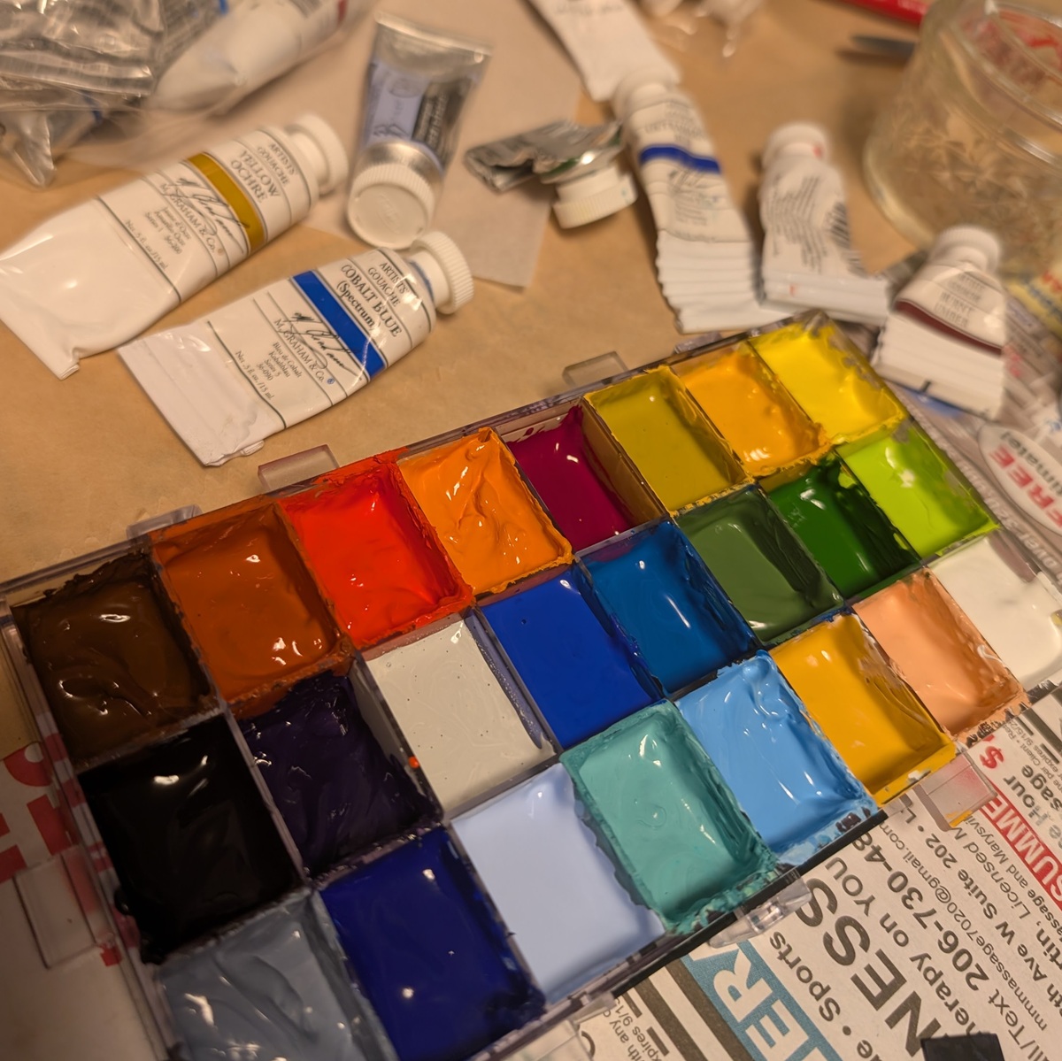 The materials fee will cover the acrylic and watercolor paints and surfaces we’ll use during the morning part of the class. I will demonstrate in oils, and you are welcome to stick with the class paints or bring any medium you’re comfortable using for the afternoon.