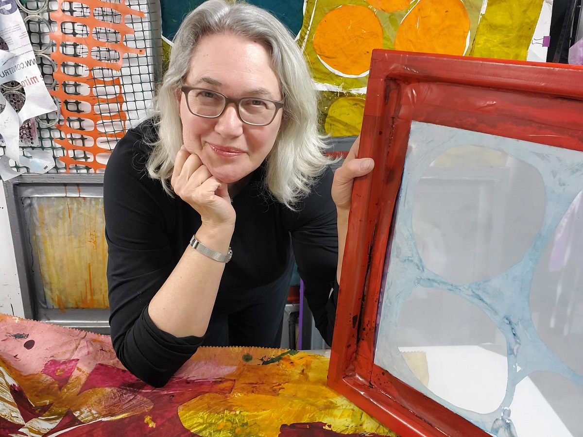 Join Pat Pauly for this five-day workshop where we print large scale fabric throughout the week. With a myriad of printing techniques using fiber reactive dye on fabric, we’ll use large graphics to produce whole cloth works. Silk screen, monoprint, stencil – along with a few more techniques – are used to print large images that can become the finished whole cloth. The class will rely on value as well as color to pull prints that relate, and graphics that will produce fabric for use in quilts, clothing, or textile art. Knowledge of dye processes helpful but not critical. This class is for those at the beginner level as well as a platform for those experienced with printing. Print with an eye on the whole design (as in Whole Cloth) and Go Big, Go Bold.