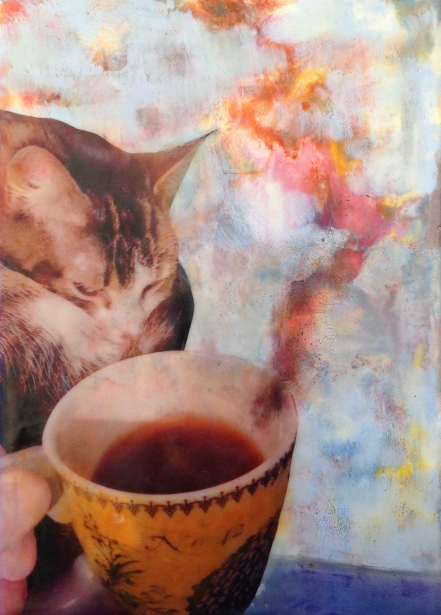 All basic supplies are included except your choice of Encaustibord or wood panels, and any small photos you want to bring to cut out. I’ll send info on what types of images to bring at least a month before class. Feel free to also bring your favorite thin papers and rubber stamps with you too. Don’t worry if you haven’t tried anything like this before. I’ll have lots of materials available for you to play with, and you can work in any style you choose.