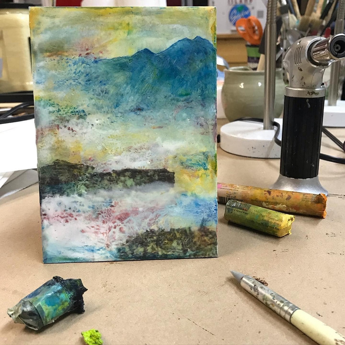 Even if you’re an experienced encaustic painter, there’s always something new to experiment with. Come with an open mind and ready to create exciting work in a fun, supportive atmosphere.