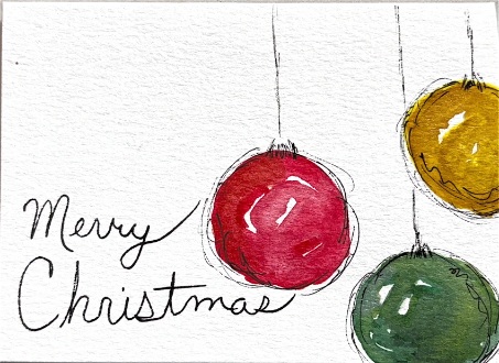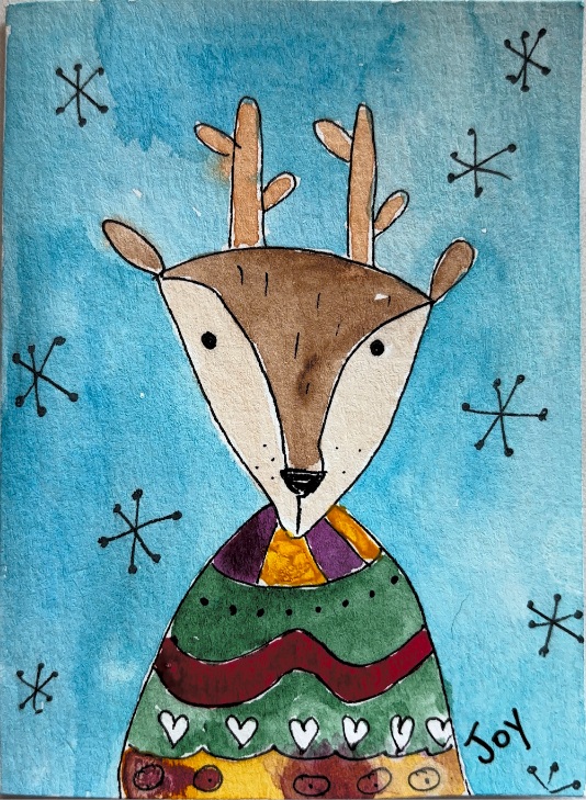 Learn how to create your own holiday notecards using watercolor and ink. No experience is necessary. You don’t need to know how to draw or paint. Timid beginners are welcome! This class is for people dipping their toes into the ocean of art and creativity.